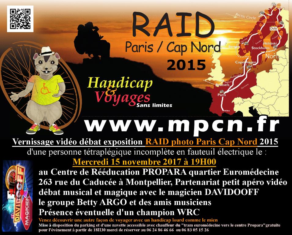 - Mercredi 15 Novembre 2017 à 19H00 : Vernissage vidéo conférence exposition au centre au rééducation Propara suivie
